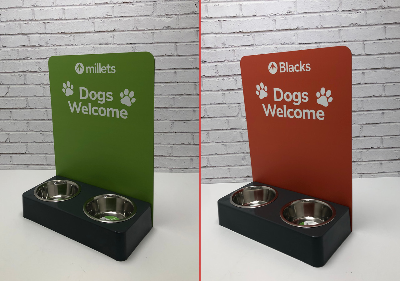 JD Outdoors, which includes the fascias of Go Outdoors, Blacks, Millets, Fishing Republic, Naylors approached us and asked us to design some dog bowl units to place outside a number of their stores.